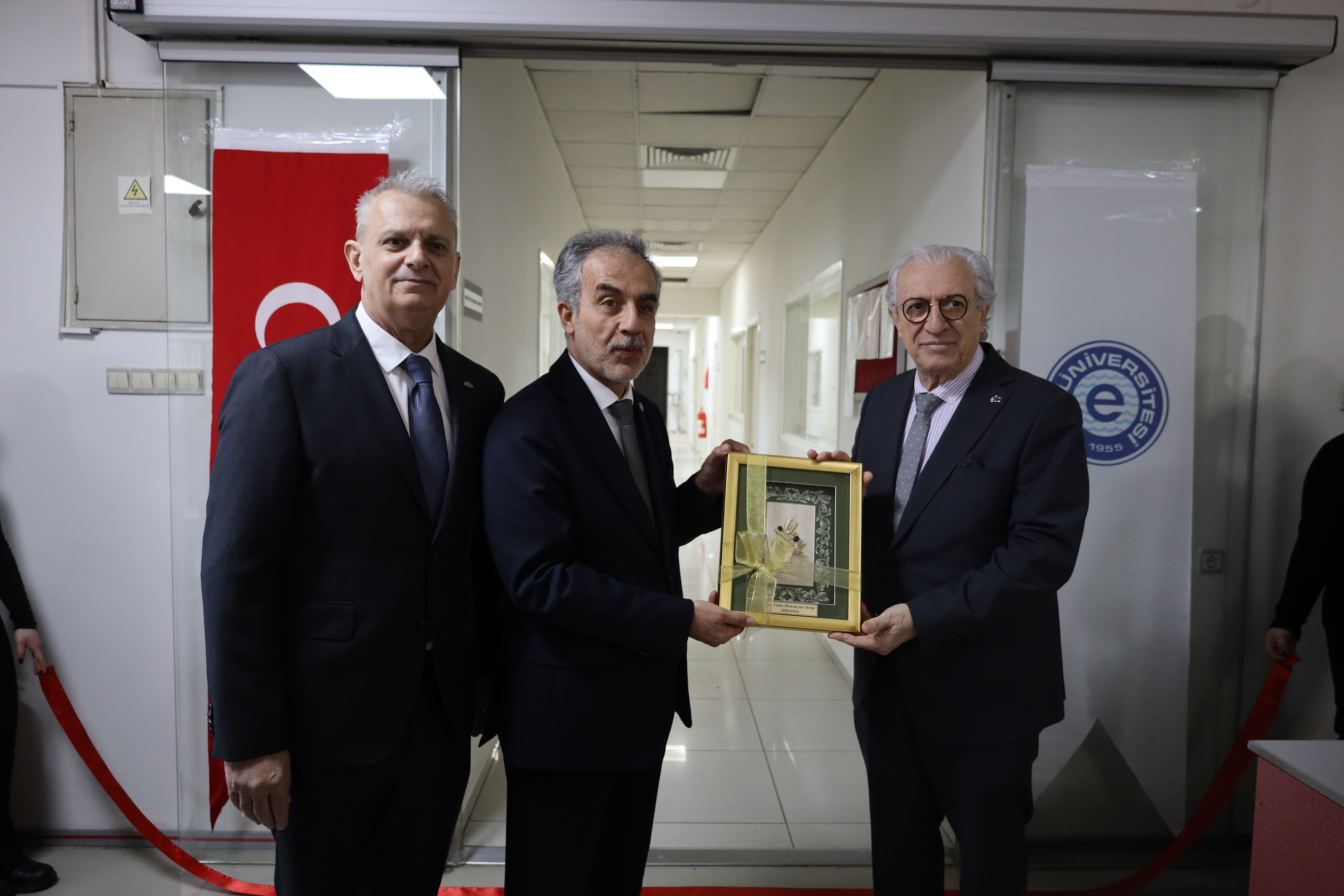 Konuşmaların ardından Ege Üniversitesi Rektörü Prof. Dr. Musa Alcı, Üniversiteye kazandırılan yeni cihazlardan ötürü Jak Eskinazi ve Süleyman Yiğit Tuncel’e plaket takdim etti.