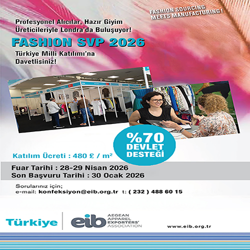28-29 Nisan 2026 tarihlerinde Londra’da düzenlenecek olan Fashion London SVP fuarına Ege Hazır Giyim ve Konfeksiyon İhracatçıları Birliğimizce, Ticaret Bakanlığı tarafından uygun bulunması halinde Türkiye Milli Katılımı organize edilmesi planlanmaktadır.