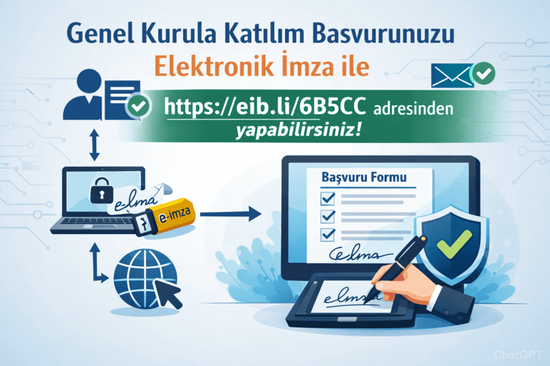 Genel Kurul toplantılarına katılım için teslim edilmesi gereken temsilci bildirim yazıları e-imzalı olarak online ortamda da iletilebilmektedir. Bu kapsamda başvurular, genelkurul.eib.org.tr adresi üzerinden elektronik ortamda gerçekleştirilebilmektedir.